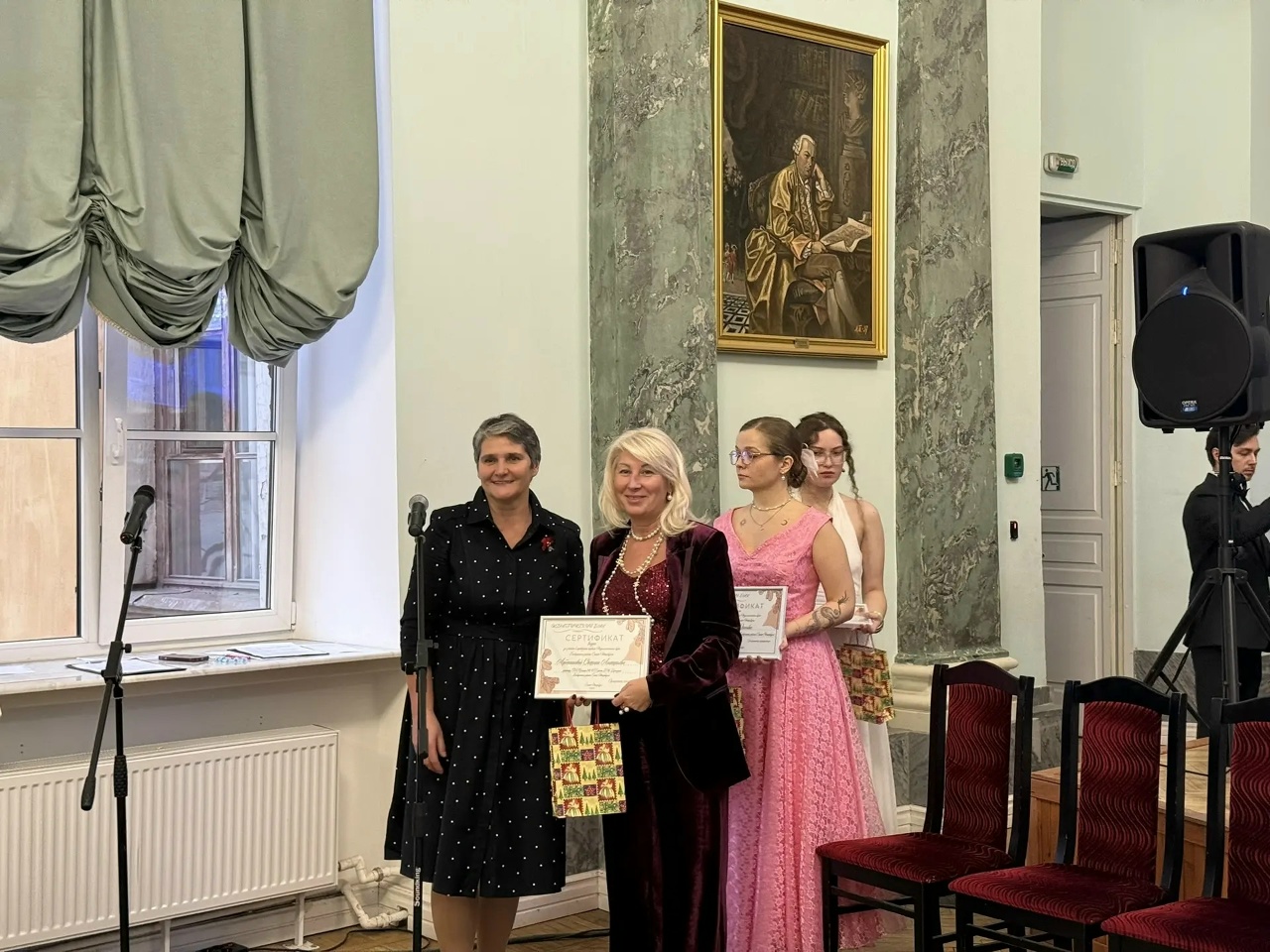 Мероприятие завершила торжественная церемония вручения сертификатов учащимся 10А класса. Каждый ученик получил сертификат о подтверждении прохождения обучения в классе психолого-педагогического направления лично из рук директора школы Светланы Анатольевны Лубенниковой.